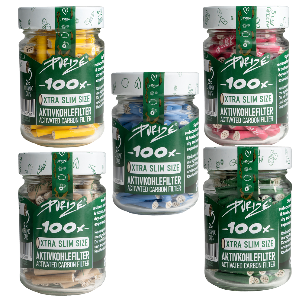 Filtros PURIZE Xtra Slim (100 UDS/Tarro Cristal)